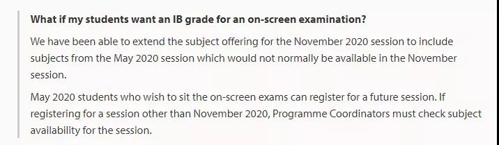 在2020年5月考試季,國際文憑組織還將發(fā)布另一份單獨文件,其中記錄了各學校向國際文憑組織提供的針對學生機考課程的預估成績。學生可以將這些文件以及任何學校簽發(fā)的成績單或官方成績單一起使用,以作為成績等級證據(jù),方便學生升學。