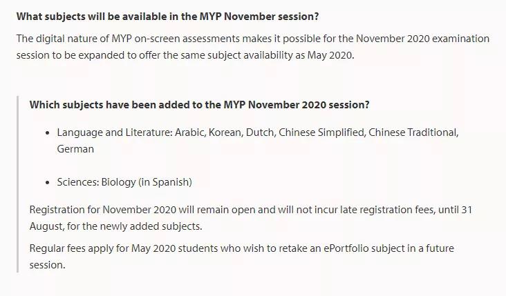 IBO在2020年11月MYP大考中添加的考試科目包括: