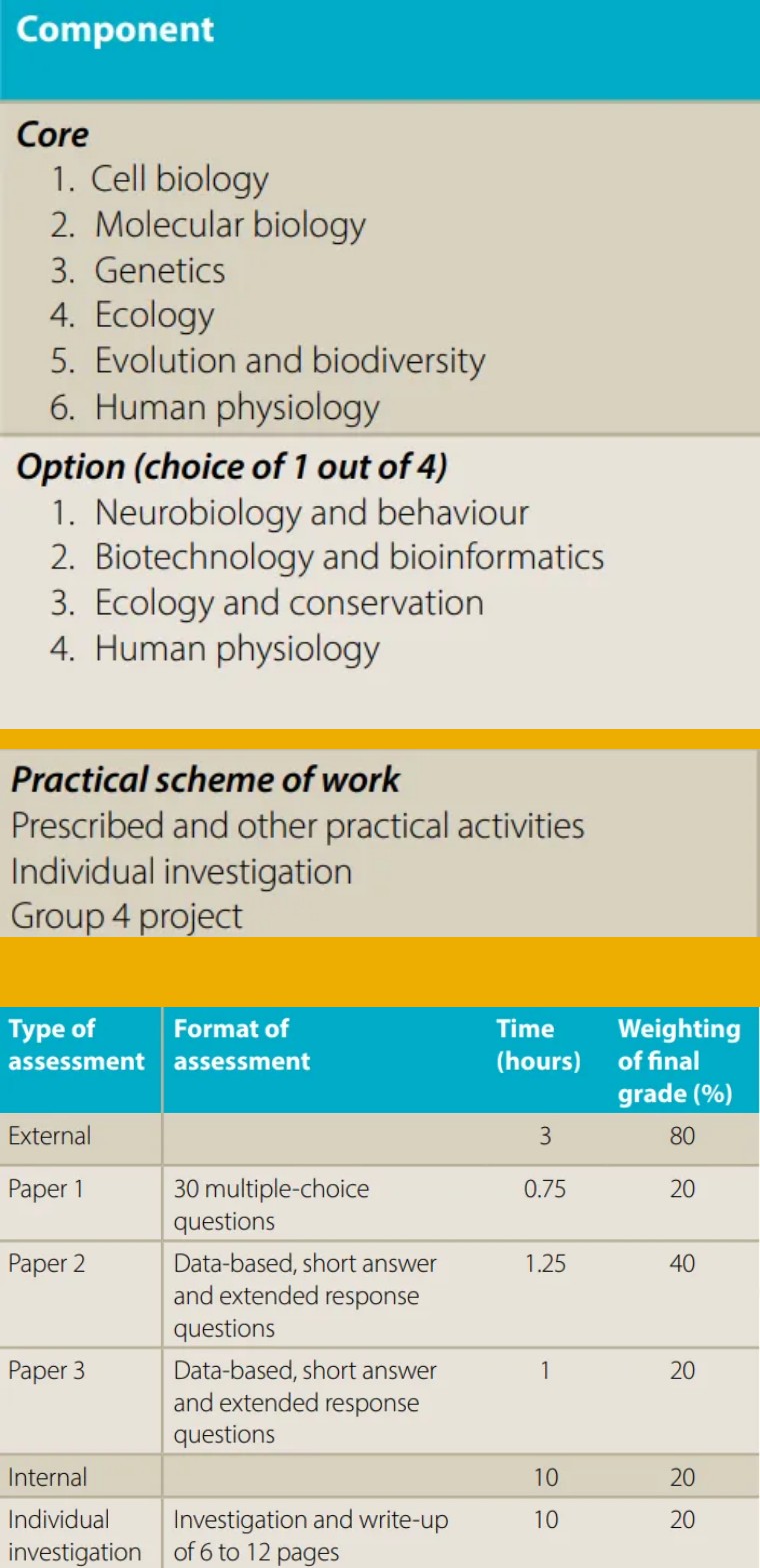 注意:無論學生是學HL還是SL課程都要從Options中選擇一個主題學習。當然,雖然主題一樣,但是與SL學生相比,HL學生還是需要在SL的基礎上再學些拓展內容。